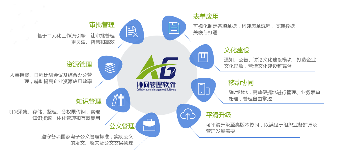 - A6+協同管理軟件是新一代面向中小型企業,是基于互聯網的高效協同工作平臺和優秀的協同 OA 管理軟件。融入了先進的管理理念,以提升企業