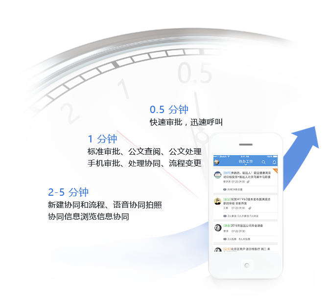 - 點擊頭像即可馬上通話溝通、短信提醒、郵件交流、不受時間困擾.拖動頭像 即可完成流程編輯,滑動手指就可獲得更多信息,審批化繁為簡。