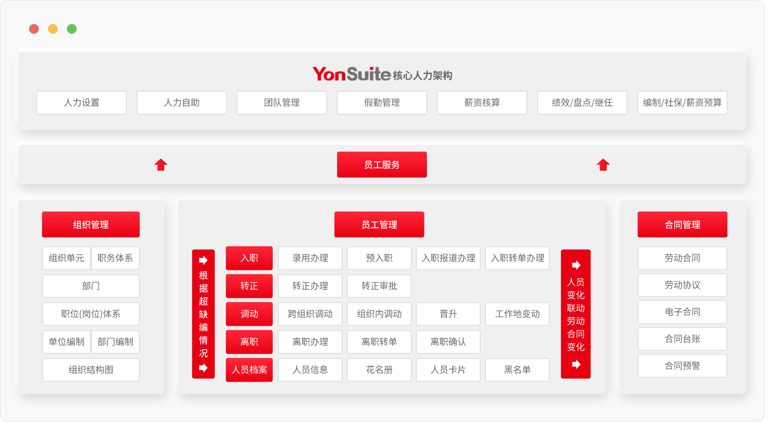 通過使用用友YonSuite人力資源系統(tǒng),實(shí)現(xiàn)人力資源管理工作線上化,組織編制清晰化,崗位職級(jí)矩陣化,入轉(zhuǎn)調(diào)離流程化,選用育留智能化,績效考核公平化,人力分析多維化,晉升發(fā)展依據(jù)化,發(fā)薪報(bào)稅自動(dòng)化。